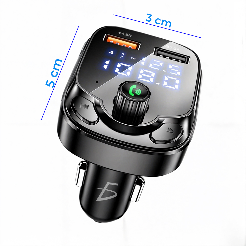 Este transmisor te permite reproducir tu música almacenada en tu reproductor de MP3, celular, tablet o cualquier dispositivo que cuente con salida de audio 3.5 mm o tecnología de comunicación de Bluetooth. Este dispositivo incluye Bluetooth que sirve para que escuches música del teléfono y para el manos libre, ya que cuenta con un micrófono incorporado.
