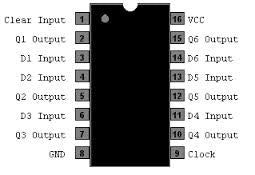 El SN74LS174N es un Flip-Flop tipo D hexagonal con clear. Utiliza circuitos TTL para implementar la lógica flip-flop de tipo D. Todos tienen una entrada clear directa. La información en las entradas D que cumplen los requisitos de tiempo de configuración se transfiere a las salidas Q en el flanco positivo del pulso de reloj. El disparo del reloj ocurre a un nivel de voltaje particular y no está directamente relacionado con el tiempo de transición del pulso positivo. Cuando la entrada del reloj está en el nivel alto o bajo, la señal de entrada D no tiene efecto en la salida. Es totalmente compatible para usar con la mayoría de los circuitos TTL.