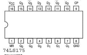 El SN74LS175N es un flip-flop de tipo D cuádruple con un circuito TTL transparente para implementar la lógica de flip-flop de tipo D. El LS175 cuenta con salidas complementarias de cada flip-flop. La información en las entradas D que cumplen con los requisitos de tiempo de configuración se transfiere a las salidas Q en el borde positivo del pulso de reloj. La activación del reloj se produce a un nivel de voltaje particular y no está directamente relacionada con el tiempo de transición del pulso positivo. Cuando la entrada del reloj está en el nivel alto o bajo, la señal de entrada D no tiene efecto en la salida. Este circuito es totalmente compatible para usar con la mayoría de los circuitos TTL.