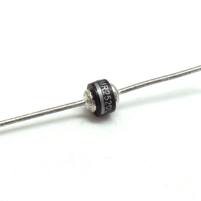 Diodo MR2520L rectificador axial protector sobretensión diseñado para aplicaciones que requieren un rectificador de baja tensión con características de avalancha inversa para su uso como potencia inversa transitoria. Desarrollados para suprimir transitorios en el sistema automotriz, estos dispositivos funcionan en modo directo como rectificadores estándar o modo inverso como rectificador de avalancha de energía y protegerán los equipos electrónicos de las condiciones de sobretensión.