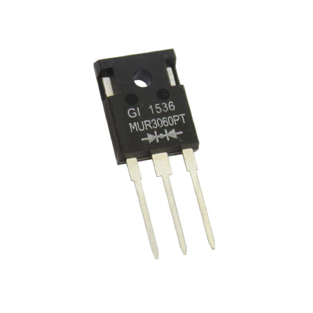 El MUR3060 es un rectificador ultrarrápido de 600 V de 3 pines para su uso en fuentes de alimentación conmutadas, inversores y como diodos de rueda libre. Este dispositivo de última generación tiene uniones de chip pasivado de vidrio y una temperatura de unión de funcionamiento de 150 ° C.