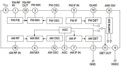 Circuito Integrado KA2297 diseñado para su uso en aplicaciones de AM / FM tuner.