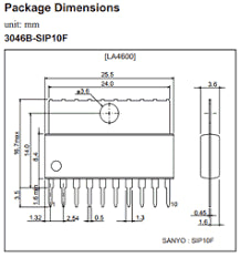 Circuito Integrado LA4600 diseñado para su uso como amplificador de potencia para radio, con silenciador.