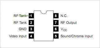 Semiconductor NTE856 es un circuito integrado oscilador de RF y un modulador de entrada dual en un paquete tipo DIP de 8 derivaciones diseñado para generar una señal de TV a partir de entradas de video de banda base. Las aplicaciones típicas incluyen videojuegos, pantallas de computadoras domésticas, grabadoras de video y equipos de prueba. El nivel muy bajo de productos de intermodulación, el paquete compacto y el pequeño número de componentes externos hacen que este dispositivo sea superior a los circuitos discretos simples.