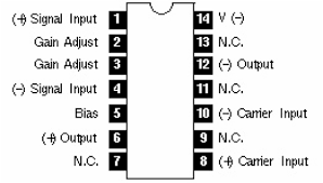 Semiconductor NTE973D es un circuito integrado diseñado para su uso como demodulador y modulador.