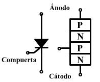 El SCR (Silicon Controlled Rectifier o Rectificador Controlado de Silicio, es un dispositivo semiconductor biestable formado por tres uniones pn con la disposición pnpn. La conducción entre ánodo y cátodo es controlada por el terminal de puerta. Es un elemento unidireccional, conmutador casi ideal, rectificador y amplificador a la vez.