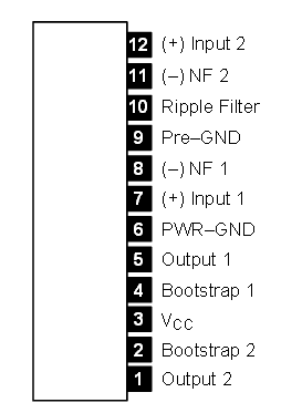 Circuito integrado TA7241AP diseñado para su uso como amplificador de potencia de audio de 19 W.