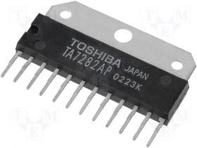 Circuito integrado TA7282AP diseñado para su uso como amplificador de potencia de audio de dos canales de 4.6 W.
