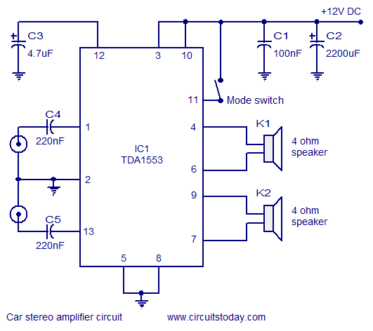 Circuito Integrado TDA1553Q es un amplificador de salida integrado de clase B en un paquete de energía de plástico de 13 derivaciones singe en línea (SIL). El circuito contiene 2 amplificadores de 22 W en configuración de carga atada en puente (BTL). El dispositivo está desarrollado principalmente para aplicaciones de radio de coche.