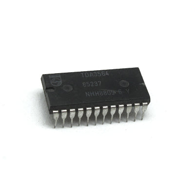 Circuito Integrado TDA3564 diseñado para su uso como decodificador monolítico para los estándares de televisión en color NTSC. Combina todas las funciones necesarias para la demodulación de señales NTSC. Además, contiene un amplificador de luminancia, una matriz RGB y un amplificador. Estos amplificadores suministran señales de salida de hasta 5 V pico a pico (información de imagen), lo que permite la activación directa de las etapas de salida discretas.