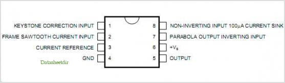 El TDA4950 es un circuito integrado monolítico en un paquete de plástico minidip de 8 pines diseñado para su uso en la corrección de cojín de pines este-oeste mediante la activación de un modulador de diodos en aplicaciones de TV y monitores.