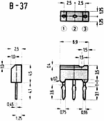 - Alta relación de transferencia de corriente directa hFE que permite una fácil inserción automática y manual, así como una fijación independiente a la placa de circuito impreso