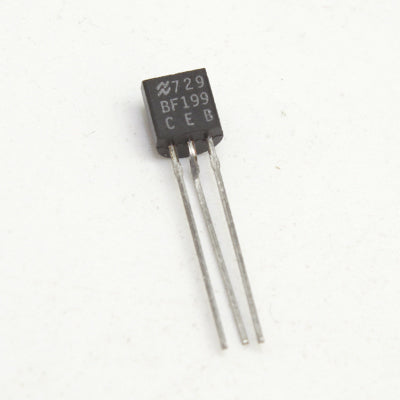 Transistor BF199 pequeña señal diseñado para su uso en aplicaciones VHF, oscilador, mezclador y aplicaciones de amplificador IF.