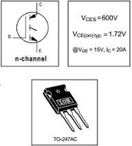 El IRG4PC40U es un IGBT de 600V ultrarápido de 8 a 60 kHz con diodo de recuperación de software, proceso de conmutación dura optimizado para alta frecuencia de funcionamiento. Generación 4 diseño de IGBT ofrece más estricto parámetro de distribución y una mayor eficiencia de la generación 3. HEXFRED diodos optimizados para un rendimiento y usados en configuraciones de puente.