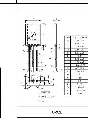 - Disipación de colector Pc (Tc=25°C): 1 W