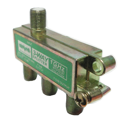Divisor (Splitter) de alto rendimiento, con 3 salidas de 75 Ohms para señal de televisión, cable o satélite, de 1 GHz. Útil para separar señales provenientes de una sola fuente de video. Divide en tres la señal proveniente de una fuente de video como antenas, televisión satelital o de cable, videocasseteras, DVD y más.